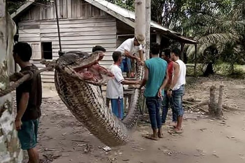 A giant python (about 7.8 metres long) lost a battle with a local man and met an unfortunate end when it was eaten.